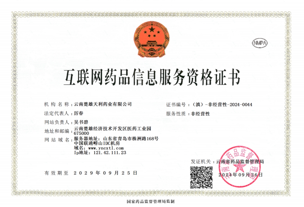 云南楚雄天利藥業(yè)有限公司位于云南省楚雄市經(jīng)濟(jì)技術(shù)開(kāi)發(fā)區(qū)醫(yī)藥工業(yè)園,距昆明140公里。公司成立于1993年,占地面積45畝。公司主要從事藥物研發(fā)、藥品生產(chǎn)、食品生產(chǎn)、消毒產(chǎn)品、衛(wèi)生用品及化妝品生產(chǎn),現(xiàn)有員工250人。建有中藥飲片車(chē)間、中藥提取車(chē)間、頭孢菌素車(chē)間、固體制劑車(chē)間及液體制劑車(chē)間共五條生產(chǎn)線(xiàn)。具有年產(chǎn)片劑10億片,膠囊5億粒,酊劑2億支,合劑1億瓶,中藥飲片100噸,中藥前處理及提取1000噸的生產(chǎn)能力。