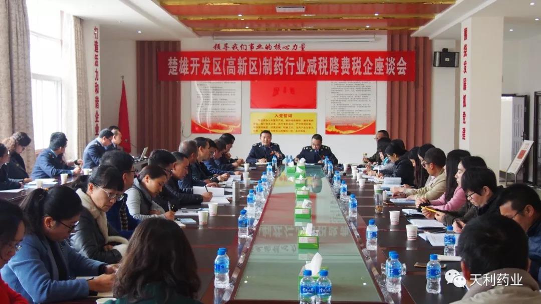 為落實(shí)好國務(wù)院大規(guī)模減稅降費(fèi)措施,確保企業(yè)充分享受稅收減免紅利,減輕企業(yè)負(fù)擔(dān)率,增強(qiáng)企業(yè)獲得感,推動形成積極的社會預(yù)期及和諧的征納關(guān)系,努力保持經(jīng)濟(jì)平穩(wěn)健康發(fā)展,奮力推進(jìn)楚雄高新區(qū)升級轉(zhuǎn)型,建設(shè)好“中國彝鄉(xiāng)?滇中翡翠?紅火楚雄”,下好2019年減稅降費(fèi)“先手棋”。2019年3月6日上午在云南楚雄天利藥業(yè)有限公司一樓會議室召開生物醫(yī)藥行業(yè)減稅降費(fèi)政策及相關(guān)業(yè)務(wù)稅企培訓(xùn)座談會。國家稅務(wù)總局楚雄州稅務(wù)局相關(guān)領(lǐng)導(dǎo)、開發(fā)區(qū)稅務(wù)局分管稅政股、納稅服務(wù)股的局領(lǐng)導(dǎo)、稅政股全體人員、楚雄經(jīng)濟(jì)開發(fā)區(qū)內(nèi)25家生物醫(yī)企業(yè)領(lǐng)導(dǎo)及財(cái)務(wù)負(fù)責(zé)人參加了此次會議。